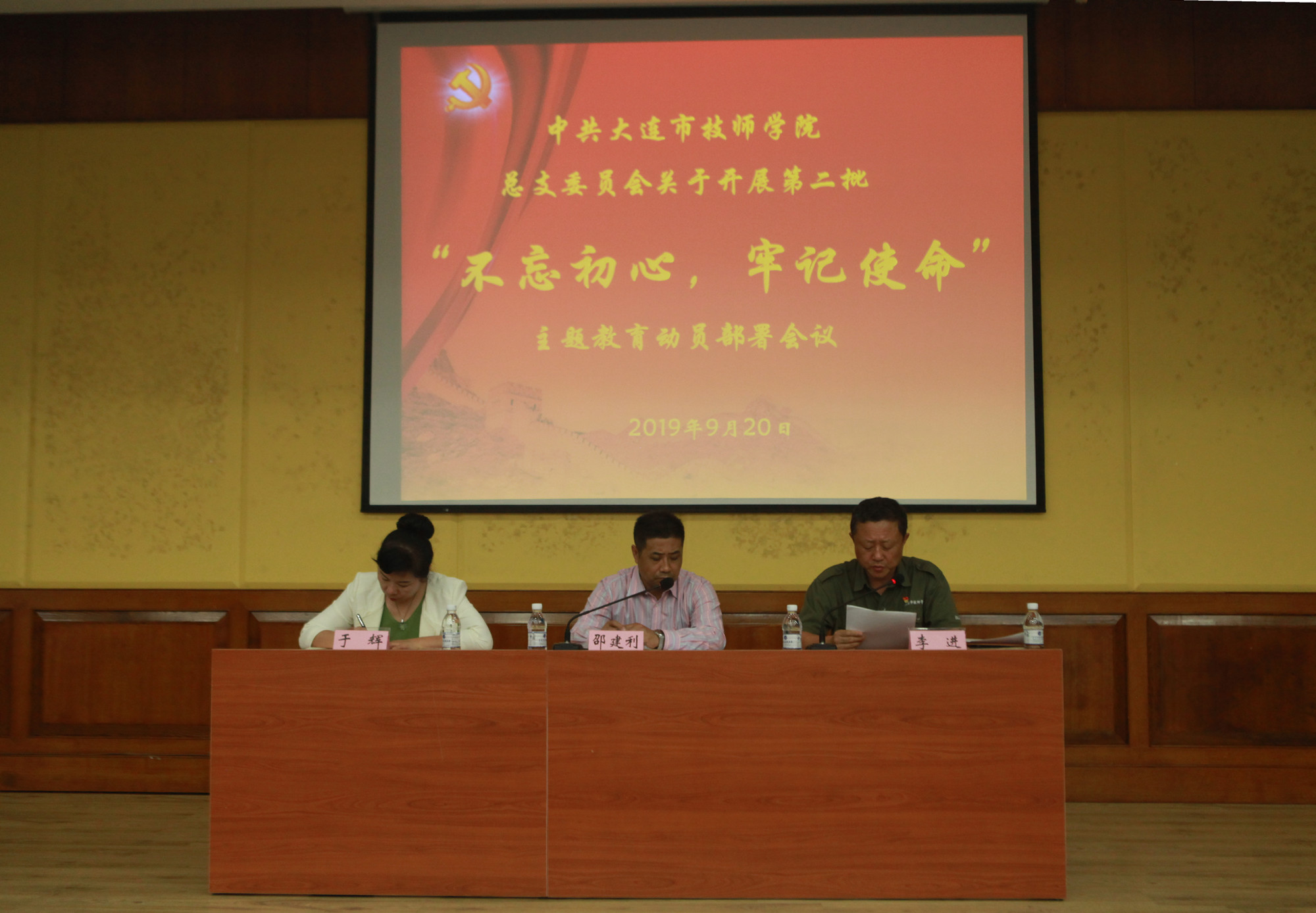 9月20日,大连市技师学院党总支召开第二批“不忘初心,牢记使命”主题教育部署会议。学院党总支书记李进同志对此次主题教育进行动员部署,局党组第七指导组组长邵建利同志、指导组成员于辉同志参加会议,邵建利同志代表局党组指导组发言。